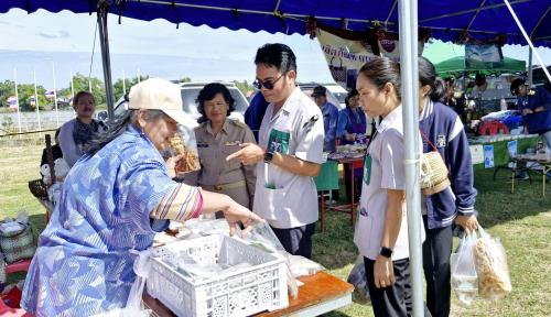 ในส่วนของสำนักงานพัฒนาชุมชนอำเภอสว่างวีระวงศ์ นางไพรวัลย์ คำจริง พัฒนาการอำเภอสว่างวีระวงศ์ พร้อมด้วยนางสาวชรินญา ศรีทอง นักวิชาการพัฒนาชุมชนชำนาญการ คณะกรรมการพัฒนาสตรีอำเภอสว่างวีระวงศ์ ผู้นำอาสาพัฒนาชุมชน (ผู้นำ อช.) เข้าร่วมกิจกรรมฯ นอกจากนี้แล้ว ยังได้เชิญชวนให้กลุ่มผู้ผลิต/ผู้ประกอบการ OTOP ร่วมจำหน่ายสินค้า เพื่อกระตุ้นเศรษฐกิจฐานราก เพิ่มยอดขายให้กับร้านค้า สร้างรายได้ให้กับชุมชนด้วย "โครงการละครึ่งพลัส" จากนั้น ได้ลงพื้นที่เยี่ยมบ้านผู้ป่วยกลุ่มเปราะบางในพื้นที่อำเภอสว่างวีระวงศ์ จำนวน 6 ครัวเรือน ดังนี้