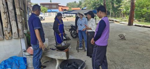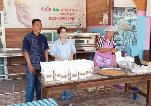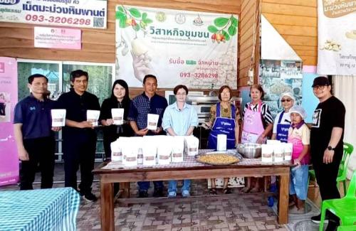 2. วิสาหกิจชุมชนกลุ่มแปรรูปเม็ดมะม่วงหิมพานต์สว่างวีระวงศ์ หมู่ที่ 12 ตำบลท่าช้าง โดยมีนายรุ่งทวี คำแข็ง ผู้ใหญ่บ้านคำนกเปล้า เป็นประธานกลุ่มฯ พร้อมสมาชิกกลุ่มให้ข้อมูลเกี่ยวกับประวัติความเป็นมาของวิสาหกิจชุมชนกลุ่มแปรรูปเม็ดมะม่วงหิมพานต์สว่างวีระวงศ์ ขั้นตอน/วิธีการแปรรูป ช่องทางการตลาด การจำหน่ายทางออนไลน์และออฟไลน์ เช่น Line , Facebook , Youtube ฯลฯ โดยเน้นแปรรูปเป็นเม็ดมะม่วงหิมพานต์คั่วเกลือคุณภาพสูง เป็นแหล่งรับซื้อเม็ดมะม่วงหิมพ์สดราคาสูง สร้างรายได้ที่ยั่งยืนให้กับชุมชน
