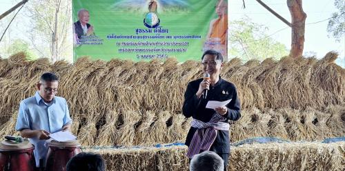 นายภูษิต น้อยโสภากุล รองผู้ว่าราชการจังหวัดอุบลราชธานี เป็นประธานพิธีเปิดโครงการ “ตุ้มโฮมถักทอสายบุญชูธรรมค้ำโลก เพื่อพัฒนาคุณภาพชีวิต ตามอุดมการณ์ชาติ แผ่นดินธรรมแผ่นดินทองแบบมั่นยืน พ.ศ. 2569” โดยมีหัวหน้าส่วนราชการ ครู อาจารย์ นักเรียน คณะพุทธบริษัทสายบุญ ภาคีเครือข่ายกลุ่มโคก หนอง นา กำนัน ผู้ใหญ่บ้านและประชาชนในพื้นที่เข้าร่วมโครงการฯ ซึ่งมีกิจกรรม ดังนี้ การแข่งขันดำนาเผือก / เทคนิคการปลูกเผือก – ข้าว – อ้อย / การทำปุ๋ยอินทรีย์ กิจกรรม “ตีข้าว กินเหล้าไห ต้มปลาค้อใหญ่ ใส่ผักชีลาว” พิธีมอบเกียรติคุณสายบุญชูธรรมค้ำโลก พิธีมอบทุนการศึกษาแก่นักเรียนผู้เข้าร่วมแข่งขันดำนาเผือก และมอบรางวัลผู้ชนะเลิศการปลูกผักสวนครัว
